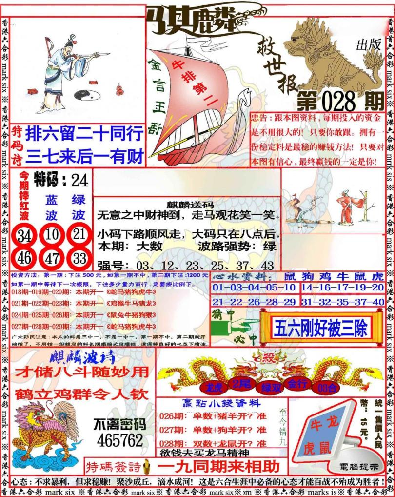 麒麟救世报/大刀皇/广州传真中特诗/广州传真猜特诗